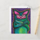 Girly Teal Cat in Oil Pastel on Purple Background Postcard