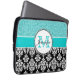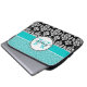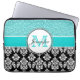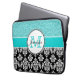 Girly, Teal, Glitter Black Damask Personalised Laptop Sleeve