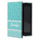 Girly, teal glitter image printed on the background, with a teal and turquoise zebra stripes pattern, and a teal solid line with two lines of faux printed white diamonds which you can personalise with your name in a fun bold script font. A cute, cool, fun design for her.