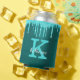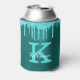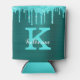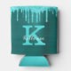 Girly Teal Turquoise Glitter Drips Monogram Name Can Cooler
