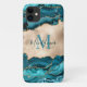 Girly Teal Turquoise & Gold Agate Stone Monogram Case-Mate iPhone Case