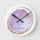 Girly Trendy Purple Golden Glitter Marbled Round Clock
