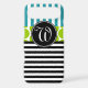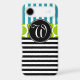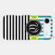 GIRLY TURQUOISE GREEN BLACK STRIPES MONOGRAM Case-Mate iPhone CASE