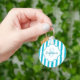 Girly Turquoise Painted Stripes Monogram and Name Key Ring