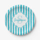 Girly Turquoise Painted Stripes Monogram and Name Paper Plate