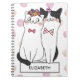 Girly White Cat with Watercolor Polka Dots Pattern Notebook