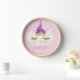 Girly White Caticorn Face on Pink Gold Script Name Clock