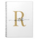 Modern, Simple, Elegant White and Gold Monogram Initial Name Feminine Signature Script Spiral Notebook. This minimalist plain colour design featuring your first name in a pretty hand lettered style black swash tail font typography with gold monogram initial on white colour background. Easy to personalise them. Great custom personalised girly gift for Birthday Party, Housewarming, Wedding, SWEET 16 Birthday party, Bridal shower, BABY shower and for anyone who loves pretty minimalist style.