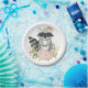 Feminine woodland themed disposable party plate featuring pastel pink & blush watercolor peonies and a cute baby raccoon