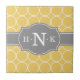 Girly Yellow Circle Pattern Grey Monogram Tile