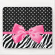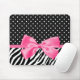 Girly Zebra Print Polka Dots and Cute Pink Ribbon Mouse Pad