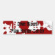 A blood soaked, splattered bumper sticker that says "Give Blood Play Roller Derby".