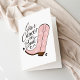 Custom greeting card for Breast Cancer Awareness month or use any time as a get well card, sympathy or congratulations card for breast cancer patients and survivors. The design features a feminine pink cowgirl boot illustration with modern typography design that says "Give Cancer the Boot."