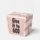 Beautiful favour boxes with the words, "Give it to God" , blush rose accent.