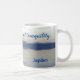 This beautiful tea / coffee mug features an atmospheric photo in muted shades of blue and grey. A lone heron flies over the sea, its reflection below. The sea is calm and hills can be seen on the far side of the bay. It's a peaceful, restful scene. The words "Give me peace, love and tranquillity" are written in script in the centre of the mug, and you can personalise it with your name to one side.