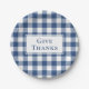 Give Thanks Blue White Gingham Plaid Thanksgiving Paper Plate