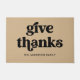 This simple and boho doormat says "give thanks" in retro black typography on a neutral tan background, and is the perfect way to decorate your home for your Thanksgiving or Friendsgiving dinner guests.
