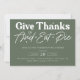 Celebrate the spirit of gratitude with our elegant green Thanksgiving dinner invitation. This beautifully designed card features a rich green backdrop, perfect for setting a warm and inviting tone for your holiday gathering. The invitation elegantly conveys the message to "give thanks and eat pie," making it an ideal choice for inviting family and friends to share in the joy of Thanksgiving feasting.