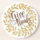 Give Thanks Fancy Text With Gold Wreath Coaster