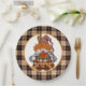 A Country Brown Plaid Thanksgiving Paper Plate With A Cute Gnome Holding A Cooked Turkey