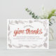 This modern invitation features a woodsy botanical border and a beautiful script font reminding us to give thanks. The perfect invitation for a potluck Thanksgiving dinner for friends and family.