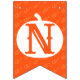 This festive "Give Thanks!" holiday bunting banner features orange and white colours, patterned leaves, decorative text, and a pumpkin accent.