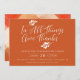 Celebrate Thanksgiving with your loved ones with this modern and elegant invitation. The invitation features the word "in all things give thanks" set on an autumn burnt orange background. The perfect way to invite your guests to a memorable evening of food, fun, and fellowship.