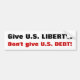 Give U.S. LIBERTY! Don't give U.S. DEBT! Bumper Sticker