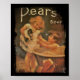 Vintage 19th century advertisement with little girl handing over a black and white puppy to her brother in the bathtub.