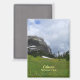 A massive mountain looms over a meadow full of yellow glacier lilies in Glacier National Park. Little evergreen alpine trees stand at the edge of the field, just beyond a patch of snow. Just above the mountain, a few patches of blue sky peek from the clouds that billow overhead. This photo was taken on the Hidden Lake trail at Logan Pass. Bring this scenic vista from the Montana Rockies to your home with this magnet. This alpine scenery also looks great on round and square magnets. Enjoy choosing your favorite way to enjoy this beautiful Rocky Mountain Landscape.
