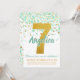Glam 7th Birthday Mint Green Gold Glitter Confetti Invitation