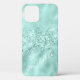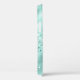 This glamourous phone case has a background of faux aqua blue foil. Across the middle is a generous sprinkling of dark and light aqua blue confetti, along with silvery white confetti. Your name is in white script diagonally across the bottom. Pretty!