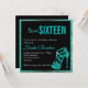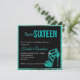 Sweet sixteen invite featuring glam high heel in faux glittery aqua on a black background with aqua frame looking fun yet elegant. Personalise this invite with your name and surprise your friends and family with this unique one of a kind invite. Let your party be a hit starting from the invites. Also available high heel stickers labels stamps in our store.
