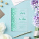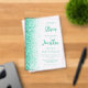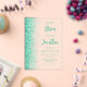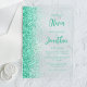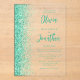 The left-hand edge of this elegant modern wedding invitation features an aqua green faux glitter border. The customisable text combines green script and sans serif fonts on a clear background.