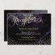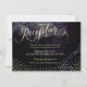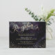 Glamour gold hand lettering calligraphy design and gold dots confetti on dark black sky night watercolor background, shimmer faux metallic gold glitter effect, modern, chic, clean and elegant, perfect for vintage wedding or winter wedding in evening. Customise your own reception card for your wedding invitation set.