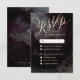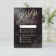 Glamour gold hand lettering calligraphy RSVP design and gold dots confetti on dark black sky night watercolor background, shimmer faux metallic gold glitter effect, modern, chic, elegant and classy, perfect for vintage wedding or winter wedding in evening. Custom your own RSVP card for your wedding invitation set.