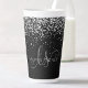 Glam Black Silver Glitter Elegant Monogram Latte Mug. Easily personalise this trendy chic latte mug design featuring elegant silver sparkling glitter on a black background. The design features your handwritten script monogram with pretty swirls and your name.