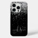 Glam Black Silver Glitter Monogram Name Case-Mate iPhone Case