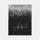 Glam Black Silver Glitter Monogram Namev Fleece Blanket