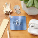 This elegant personalized keychain features a monogram and first name in modern black and white script on a glam blue faux brushed metal background.