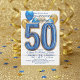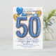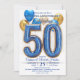 Glam Blue Gold Balloons 50th Wedding Anniversary Invitation