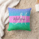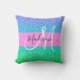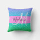 Girly and glam blue, green, aqua and turquoise mermaid glitter sparkles gradient monogram name and initial throw pillow. Your custom name and monogram are written in an elegant hand lettered script with a pink background. A perfect birthday or Christmas gift!