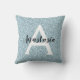 Girly and glam blue silver glitter sparkles monogram name and initial throw pillow. Personalise with your custom name in an elegant black script and your monogram initial in white. You can change the text colour and font style and size using the customise option.