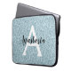 Glam Blue Silver Glitter Sparkles Monogram Name Laptop Sleeve