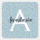 Glam Blue Silver Glitter Sparkles Monogram Name Square Sticker