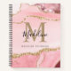 Glam Blush Pink Agate Geode Gold Script Monogram Notebook