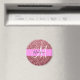 Girly and glam blush pink rose gold glitter sparkles white monogram name and initial magnet. Your custom name and monogram are written in an elegant hand lettered script with a pink background. A perfect birthday or Christmas gift!