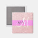 Girly and glam blush pink rose gold glitter sparkles white monogram name and initial magnet. Your custom name and monogram are written in an elegant hand lettered script with a pink background. A perfect birthday or Christmas gift!