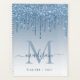 Modern Glam Bright Light Sky Blue Glitter Drips Girly Feminine Luxury Monogram Script Name 2021 Planner