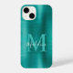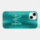 Glam Brushed Metallic Teal Elegant Script Monogram iPhone 14 Case
